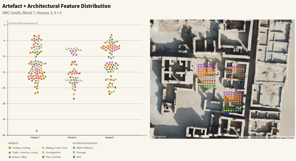 Data visualization posters from Visualizing Care: MohenjoDaro exhibition at Warehouse 50, Project Space at Alserkal Foundation Dubai, 2025.