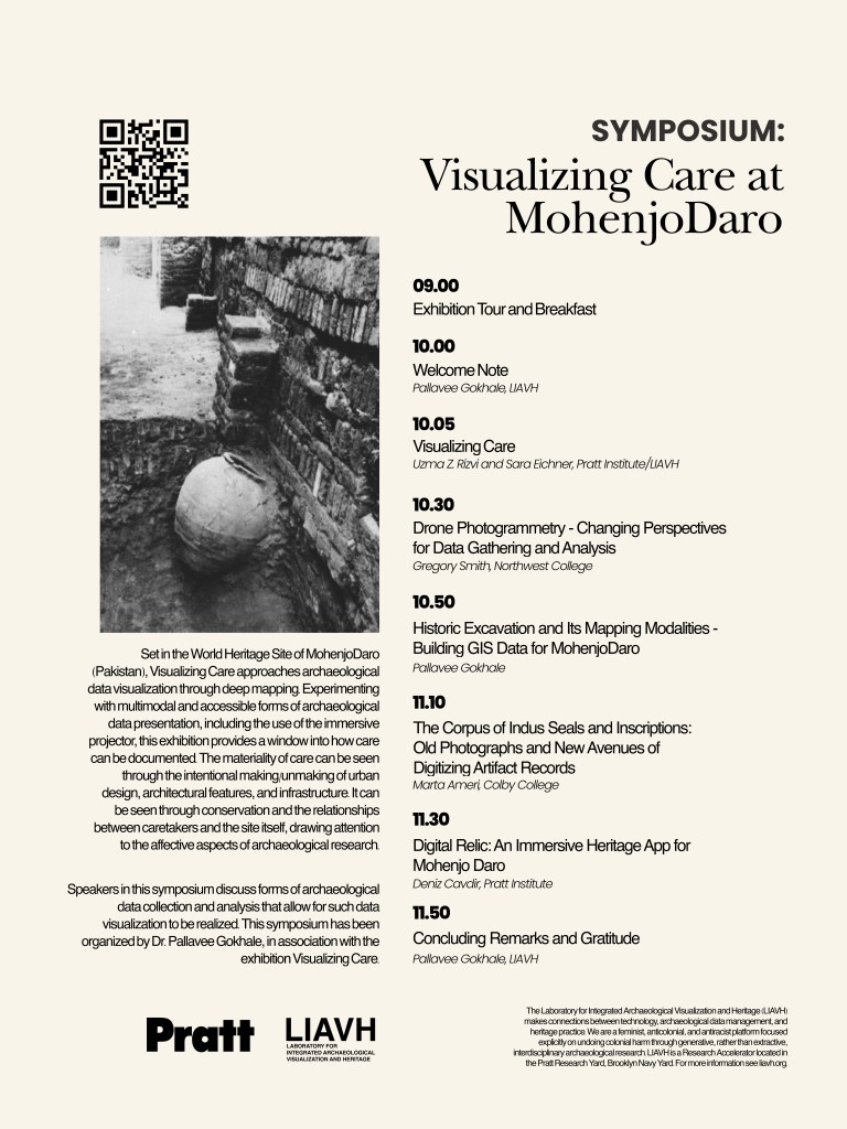 April 4, 2025 (Dr. Uzma Z. Rizvi presents with Sarah Eichner, Marta Ameri, Sarah Burry, Deniz Cavdir, Pallavee Gokhale, and Greg Smith.): “Symposium: Visualizing Care at MohenjoDaro”. Pratt Institute. Brooklyn, NY.